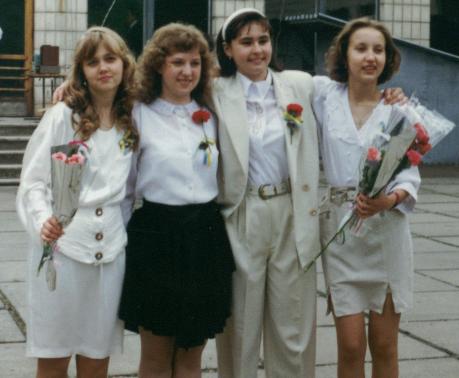 Родители отдали меня в украинскую школу с английским уклоном, что было довольно смелым шагом в далёком 1987 году... но, как показала история, они не ошиблись. Мало что помню уже про то время, больше какие-то отрывочные воспоминания... Первая учительница умерла от рака крови, после нашего третьего класса мы попали сразу в пятый, потому что именно тогда с 10-леток школы становились 11-летними. Шестого класса у меня не было, вернее, он был. Сдан экстерном за лето. Информатикой стал интересоваться классе в пятом, это происходило на ВК "Корвет". Максимум в седьмом уже решал задачки выпускникам, ибо это было действительно просто :). Проштудировал всё, что в школьной библиотеке было из книг по Бейсику - целых три штуки. Неплохо давалась математика, умеренно - физика, просто божественно шёл английский. Очень не любил биологию, не ладил с учителем физкультуры, мирно презирал пение. Единственное, что мог привить детям наш учитель пения - ненависть к украинской народной песне, ибо другой реакции то, что играется на расстроенном пианино, и поётся старым прокуренным голосом, imho вызвать просто не может. Физика была сама по себе интересной, но учителя физики у нас все мирно ненавидели. Человек преподавал по-КПИ'шному (надеюсь, обьяснять не надо?). Химия мне сильно нравилась. Информатика казалась скучноватой, математика - чуть интереснее... я просто не сразу догадался, что у нас облегчённая программа - все силы брошены на английский. До сих пор, кстате, страдаю изза того, что у меня ослаблен базовый уровень математики. Русский язык/литература были только до класса девятого, вёл прикольный человек, звали его Поляков А.С. (да, именно те А.С. :)), что служило основой для целой массы приколов. Укр язык/литературу вела довольно весёлая женщина, выходец Карпат, пережившая сталинские времена, одна из тех, кто был на БАМ'е... кроме ручки, неплохо владеет серпом и кувалдой. Английский... отдельная история. После уроков мы дымились. Работали с дичайшей перегрузкой. НО - я при полном отсутствии практики до сих пор помню язык. Он стал для меня вторым родным.