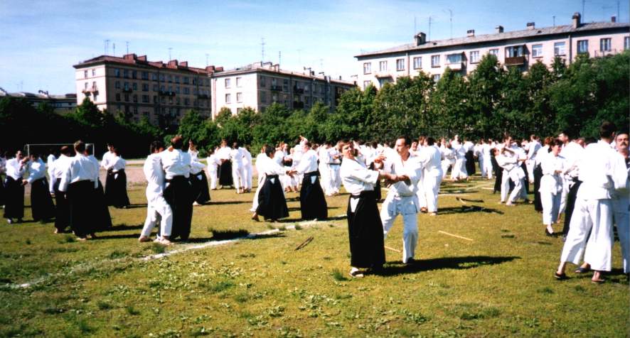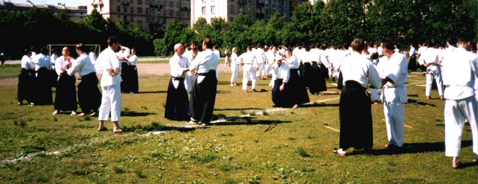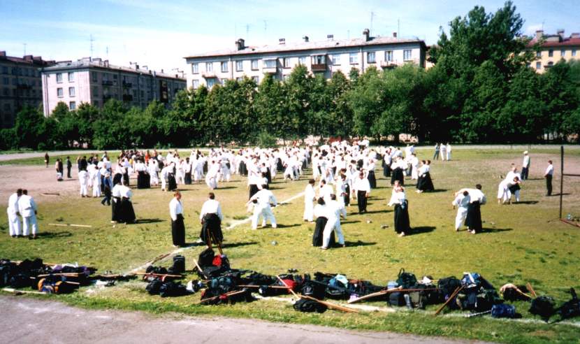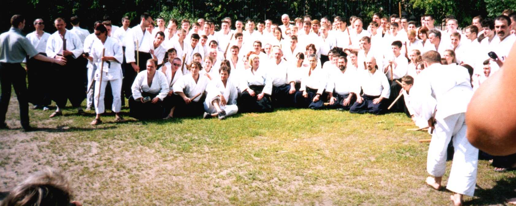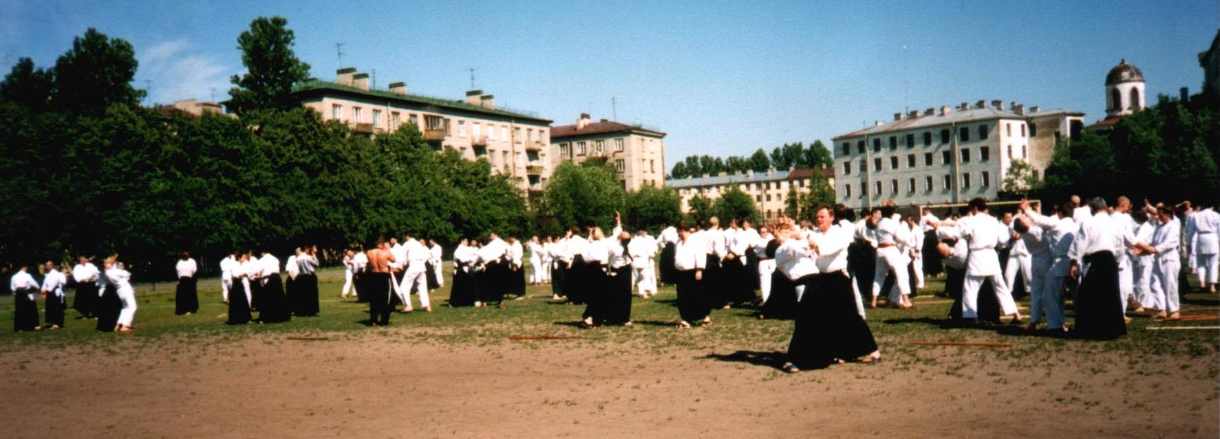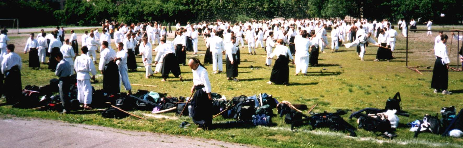 Жена Тамуры Тамура Тамура Занятие, как всегда, началось с дыхательных упражнений Разминка... Паевская разминает Вычика :) Паевская всё ещё разминает Вычика :)) Хранители сертификатов (коробка видна по центру) Стефан в массах ...а тем временем на беговой дорожке... Перспектива чуток сверху Работа с оружием: дзё Тамура что-то обьясняет Работа с оружием: бокэн