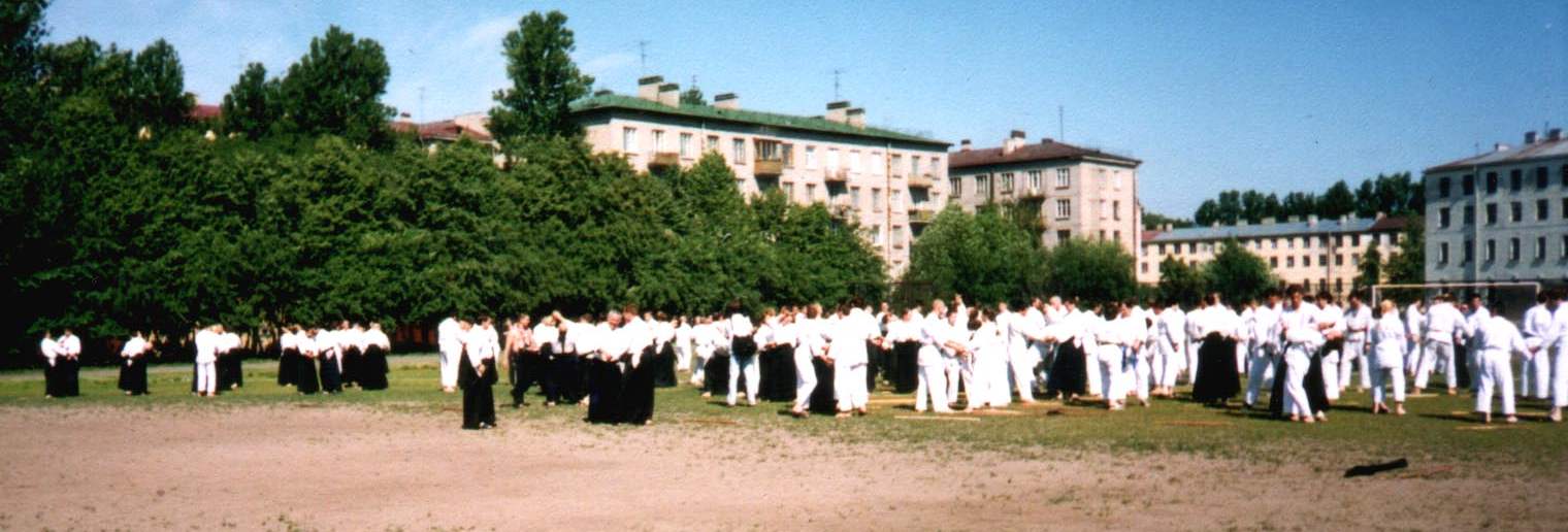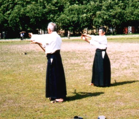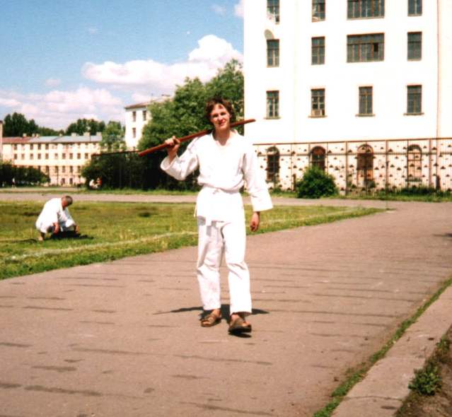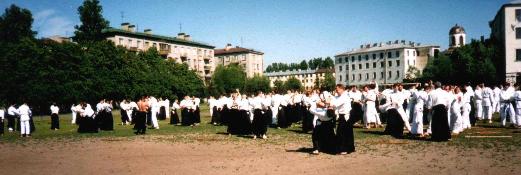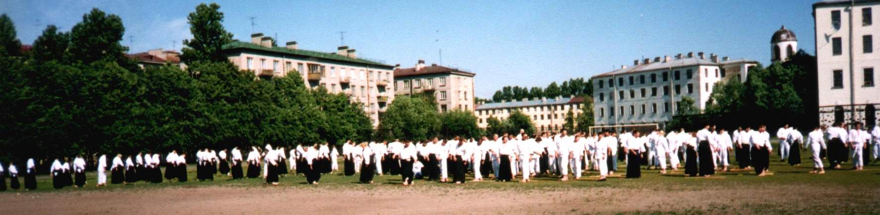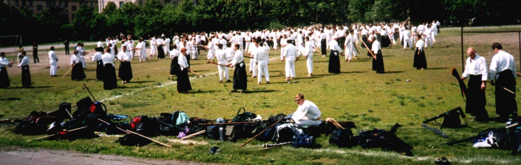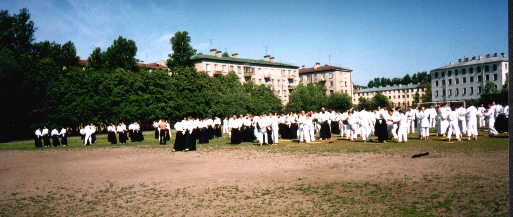 Жена Тамуры Тамура Тамура Занятие, как всегда, началось с дыхательных упражнений Разминка... Паевская разминает Вычика :) Паевская всё ещё разминает Вычика :)) Хранители сертификатов (коробка видна по центру) Стефан в массах ...а тем временем на беговой дорожке... Перспектива чуток сверху Работа с оружием: дзё Тамура что-то обьясняет Работа с оружием: бокэн